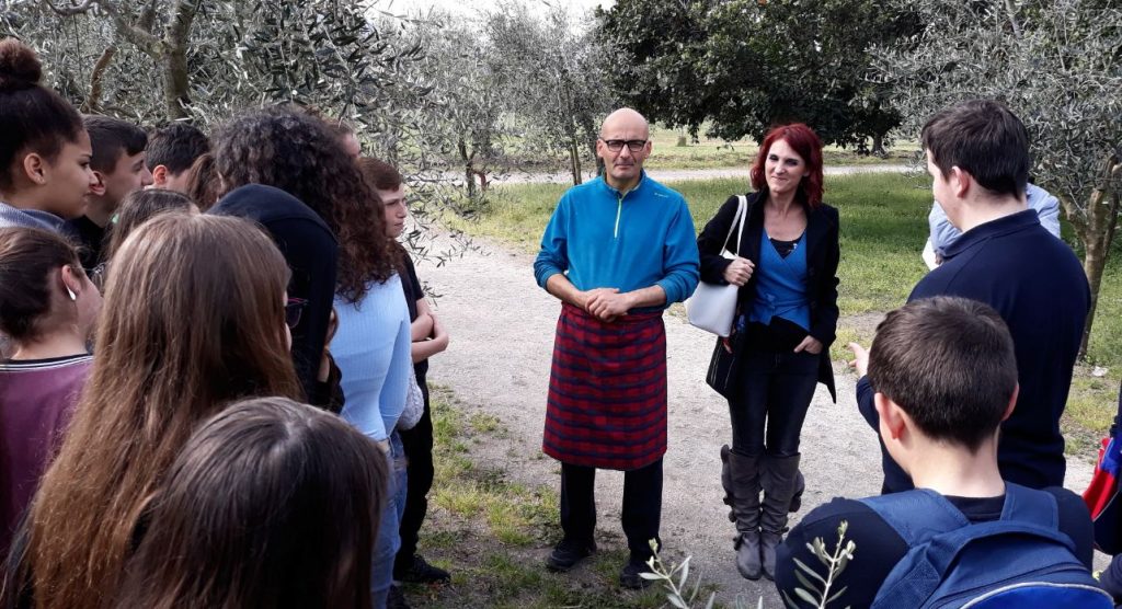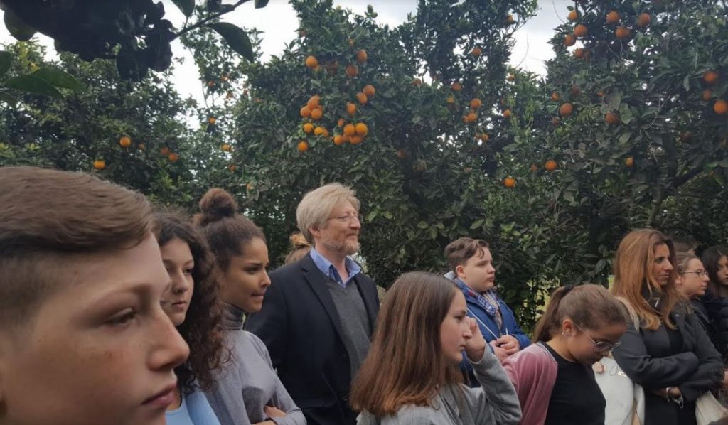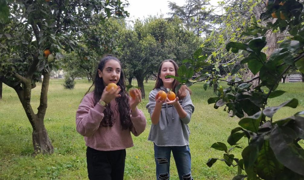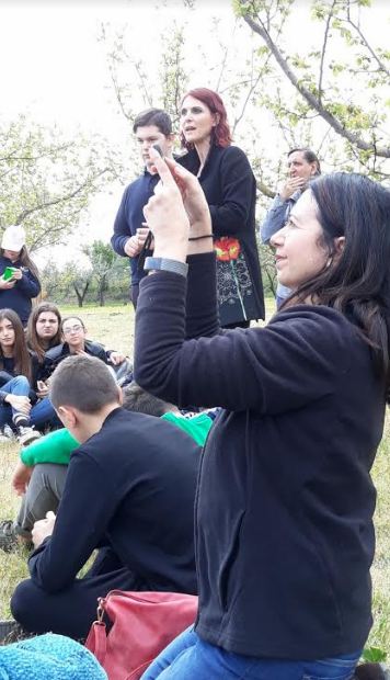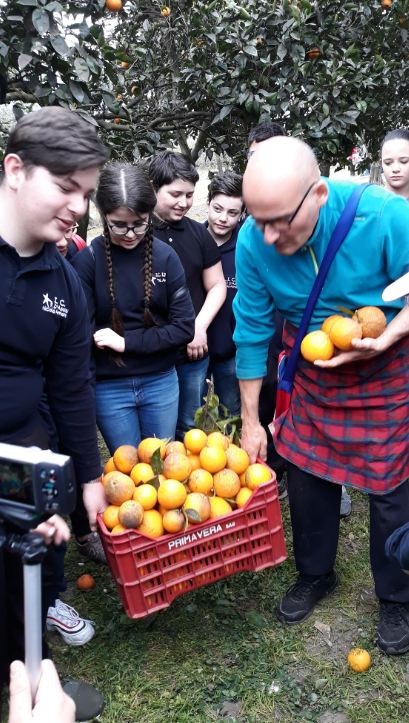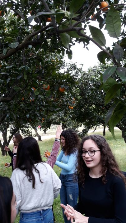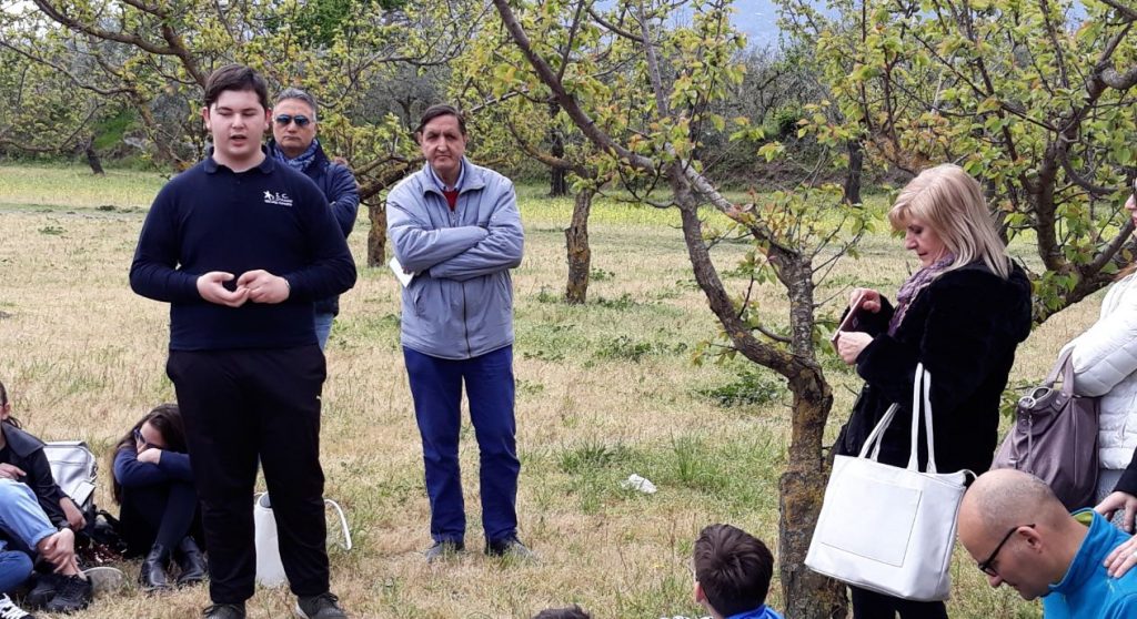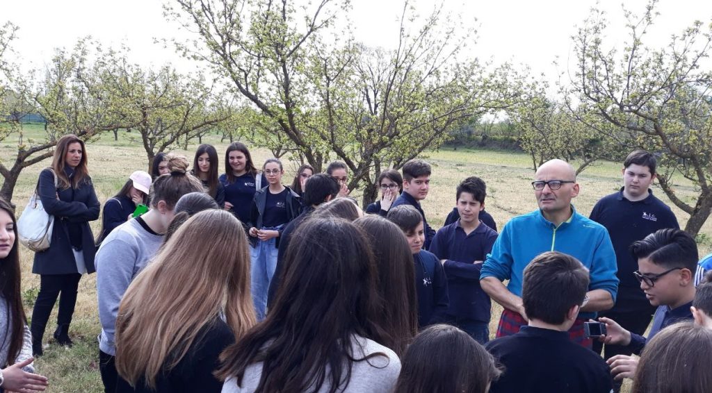 con la Prof.ssa Acampa, atmosfera piacevole in un bel frutteto...