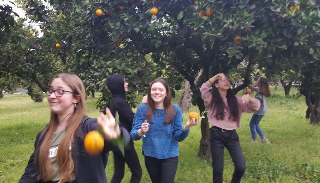Insieme a raccogliere arance...